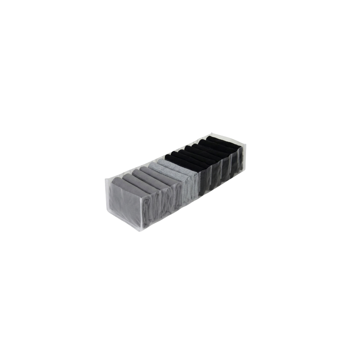 Ideal para organizar regatas, panos de prato, macacões de bebê, conjuntos infantis, pijamas infantis, camisetas infantis, bermudas infantis, tops sem bojo, sutiãs sem bojo, cuecas samba-canção, lenços, regata dry fit, baby dool e camisola (tecido fino).